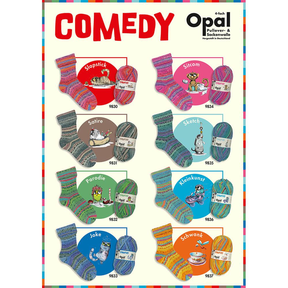 Opal Comedy Opal Comedy is een speels speciaal ontworpen sokkengaren waarvan de namen geïnspireerd zijn door grappen, satire en sitcoms!