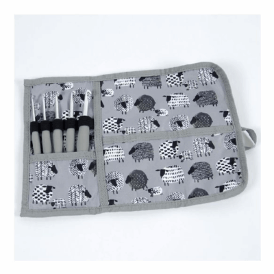 Dit haaknaaldenetui van DMC met schattig schaapjesmotief is een leuk cadeau voor iedere haakfan. Het vakje aan de binnenzijde biedt ruimte aan allerlei haakaccessoires, zoals stekenmarkeerders of schaartje (niet meegeleverd). Het etui bevat 5 haaknaalden van aluminium met kunststof handvat, in naalddikte 3.00, 4.00, 5.00, 6.00 en 8.00mm. Opgevouwen is het etui 20 x 10cm – klein genoeg om in een tas of rugzak mee te nemen.