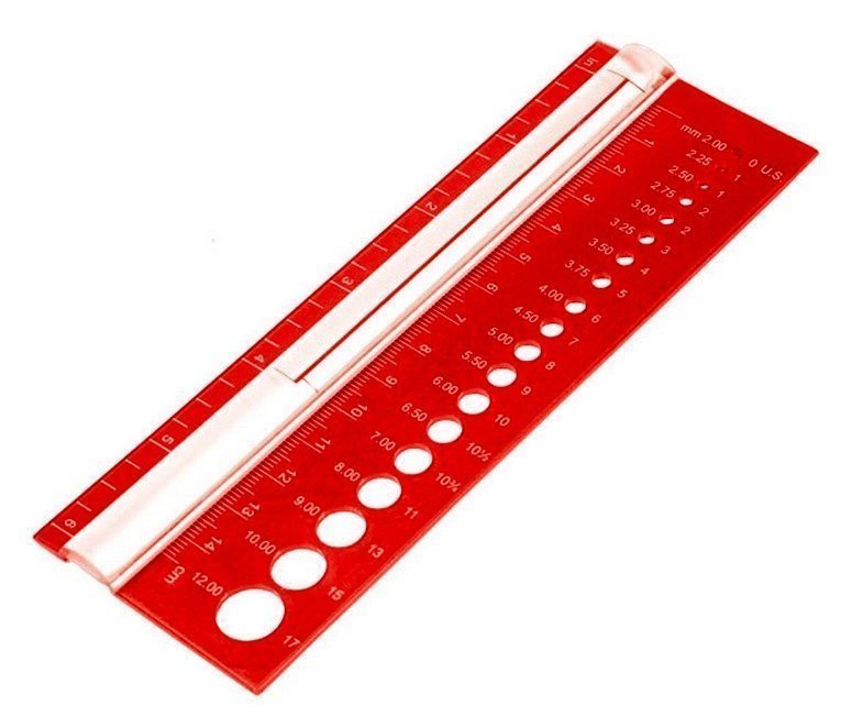 Met deze KnitPro-breinaaldmeter kunt u eenvoudig de maten van naalden identificeren. U kunt het ook gebruiken voor het meten van steken of rijen.