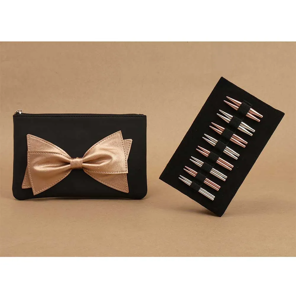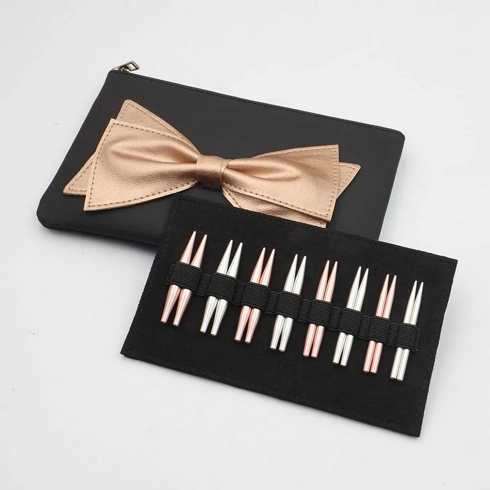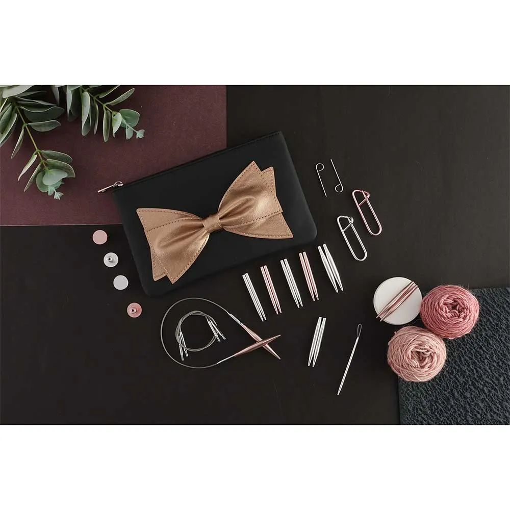 De meegeleverde kabels zijn sterk, flexibel en voorzien van handige gaatjes voor lifelines of het vastzetten van de naalden. Alles wordt geleverd in een stijlvol kunstleren ritsetui met glanzende strik – een waar cadeau voor elke breiliefhebber!