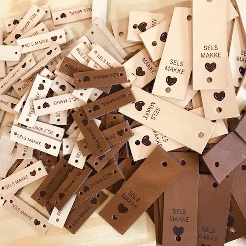 Al onze leren tekst labels worden in het atelier van Bobbiny ontworpen en geproduceerd.