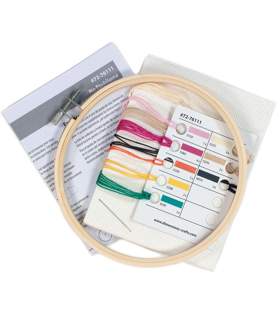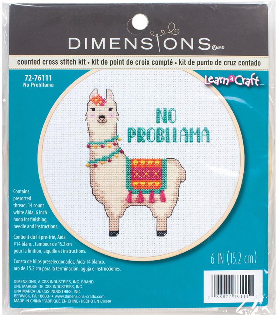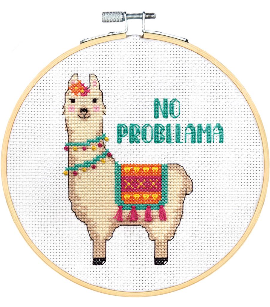 No worries, a friendly llama is here to make you smile! Featuring a fun play on words, No Probllama in counted cross stitch by Dimensions is quick and easy to stitch. Finished size: 6″ diameter. Kit contains presorted thread, 14 count white Aida , 6-inch bamboo hoop, needle, and instructions.