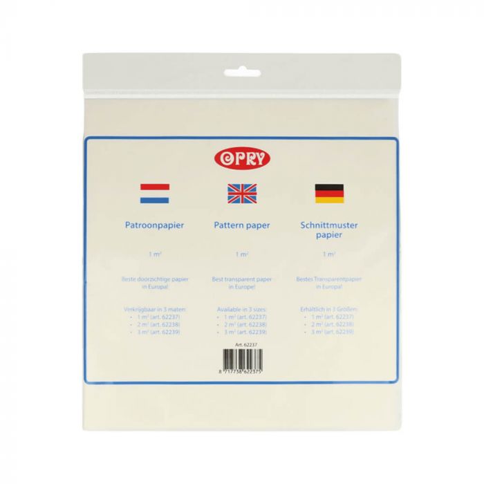 Opry-patroonpapier is zeer gemakkelijk in gebruik, omdat het transparant is. Voor het kopiëren van patroondelen is patroonpapier een onmisbaar gereedschap en het hoort dan ook tot de basisuitrusting van elke kleermaker. Hiermee kan een patroon eenvoudig worden overgebracht op stof en een patroon worden vergroot.